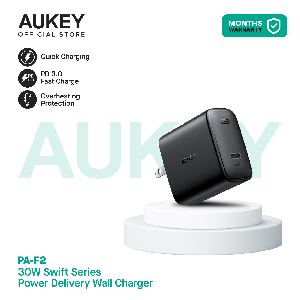 The Aukey Swift 30W Wall Charger (model PA-R1P) is a compact and efficient USB-C charger designed for fast charging of various devices. Here are its key specifications: